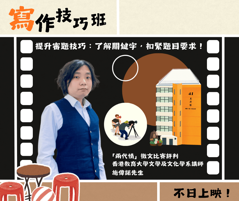 2025-26年「兩代情」徵文比賽現已展開!同學是否已開始針對比賽題目進行資料蒐集呢?本年度,我們同樣會舉辦「寫作技巧班」,邀請本地作家及學者分享個人對寫作技巧的見解和創作心得,藉此讓同學了解不同的寫作方式,以提升寫作水平。